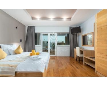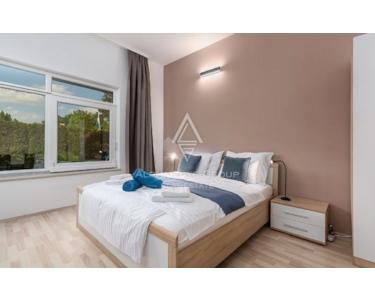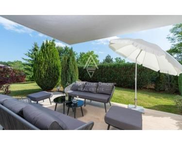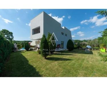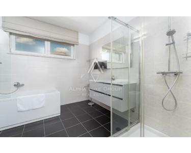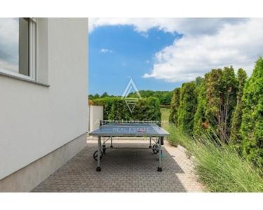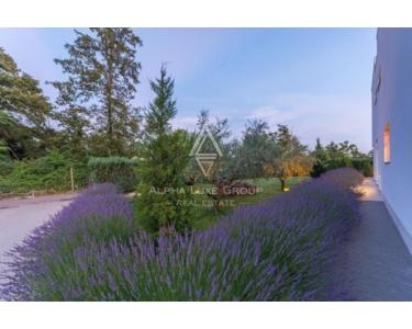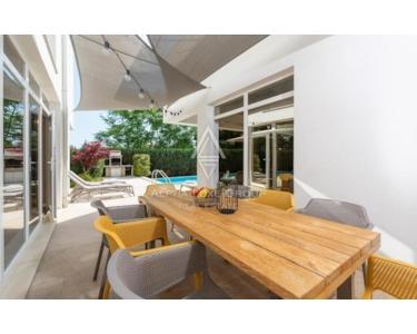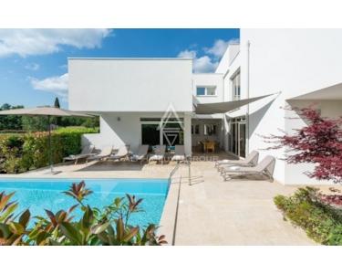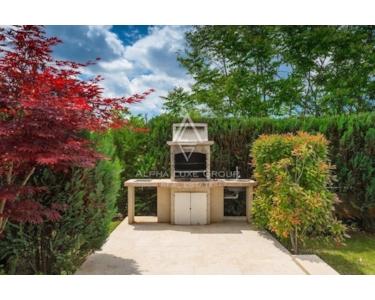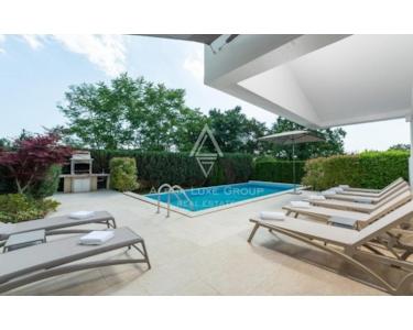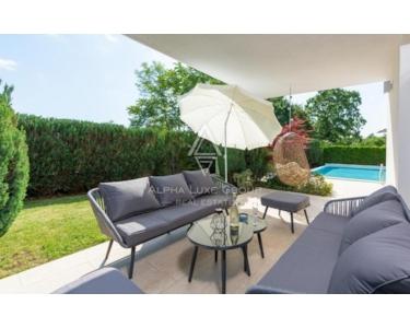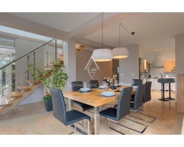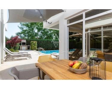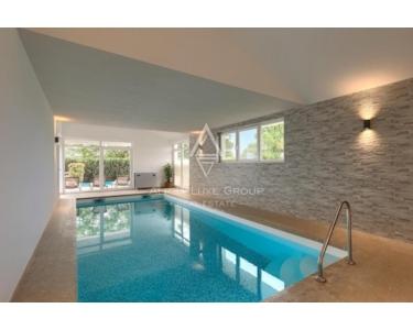 Inmitten dieser idyllischen Stadt liegt eine modern gestaltete Villa mit raffiniertem Interieur, einem überdachten Schwimmbad und einem eigenen Wellnessbereich. Die Residenz verfügt über vier prachtvolle Schlafzimmer, fünf exquisite Badezimmer und ein zusätzliches Gäste-WC. Mit einer großzügigen Wohnfläche von 350 m², die sich über zwei Etagen erstreckt, ist die Villa ein Musterbeispiel für Weiträumigkeit und modernen Luxus und besticht durch minimalistische Eleganz mit auffälligen Details und großen Glasfronten, die den Blick auf das üppige Grün freigeben.