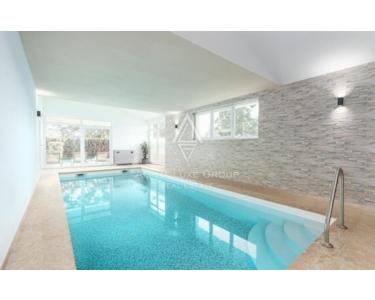 Der private Innenpool, mit einer Größe von 28 m², verfügt über eine temperatursteuerbare Wärmepumpe, ergänzt durch einen 32 m² großen Außenpool.