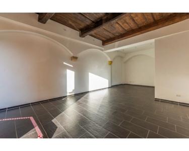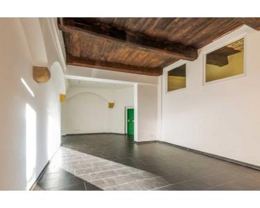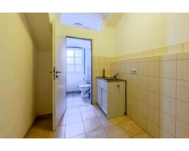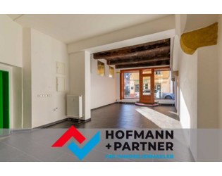 Der ca. 42 m² große Verkaufsraum besitzt eine voll verglaste Schaufensterfront mit Ladeneingangstür zur Straße. Die gut erhaltene Holzbalkendecke und die historischen Sandsteinelemente verleihen dem Raum ein besonders charmantes Ambiente. Im hinteren Bereich des Verkaufsraumes führt eine Tür zum Hausflur, über welchen Sie Lager, Teeküche und die Toilette erreichen.