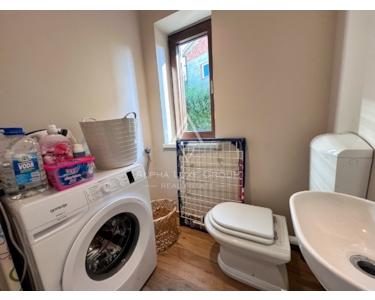 Auf einer Fläche von 650 m² erstreckt sich die Villa selbst über 142 m² auf zwei Etagen. Das Erdgeschoss besticht durch ein offenes Wohnzimmer, Küche und Essbereich, begleitet von einem Schlafzimmer, Badezimmer, einer kleinen Toilette und einem Abstellraum. Dank der zahlreichen Fenster und Türen wird der gesamte Raum mit natürlichem Licht durchflutet. Über die Treppe erreichen Sie das erste Obergeschoss mit drei Schlafzimmern. Eines bietet eine private Terrasse mit Blick auf den üppigen Garten, Pool und Natur, während ein weiteres über ein eigenes Badezimmer verfügt. Das dritte Schlafzimmer teilt sich ein Badezimmer mit dem vorherigen.