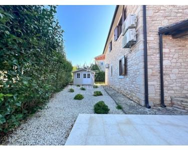 Diese fesselnde Steinvilla steht zum Verkauf! Eingebettet in eine ruhige Siedlung unweit einer malerischen istrischen Stadt, liegt sie nur 12 km vom Meer entfernt und nur 15 Autominuten von der Stadt Poreč.