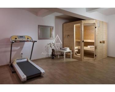 Im Untergeschoss befindet sich ein Spa- und Wellnessbereich mit Whirlpool, Sauna, Fitnessraum und Bad.