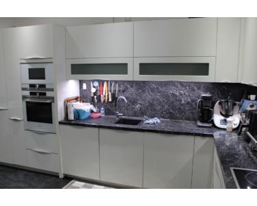 Beleuchtung erfolgt über Spots in einer abgehängten Zimmerdecke in