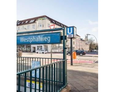 Zusätzliche Lebensqualität bieten die Sportmöglichkeiten im Volkspark Mariendorf sowie die Nähe zum Tempelhofer Feld, das nur etwa 4 Kilometer entfernt liegt und Raum für vielfältige Aktivitäten bietet. Auch die beliebte Einkaufsmeile Schloßstraße in Steglitz ist in nur etwa 6 Kilometern erreichbar. Die Anbindung an den öffentlichen Nahverkehr ist hervorragend: Die U-Bahn-Station Westphalweg liegt eine Gehminute entfernt und verbindet die Lage optimal mit der Berliner Innenstadt.