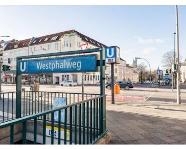 Zusätzliche Lebensqualität bieten die Sportmöglichkeiten im Volkspark Mariendorf sowie die Nähe zum Tempelhofer Feld, das nur etwa 4 Kilometer entfernt liegt und Raum für vielfältige Aktivitäten bietet. Auch die beliebte Einkaufsmeile Schloßstraße in Steglitz ist in nur etwa 6 Kilometern erreichbar. Die Anbindung an den öffentlichen Nahverkehr ist hervorragend: Die U-Bahn-Station Westphalweg liegt eine Gehminute entfernt und verbindet die Lage optimal mit der Berliner Innenstadt.