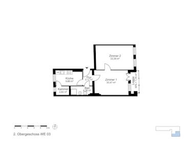 Die Wohnung ist seit dem 01.07.1983 vermietet. Die monatliche Nettokaltmiete beträgt 256,50 Euro. Für den Käufer gibt es eine Sperrfrist bis 2033, in diesen Zeitraum ist die Kündigung wegen Eigenbedarf ausgeschlossen.