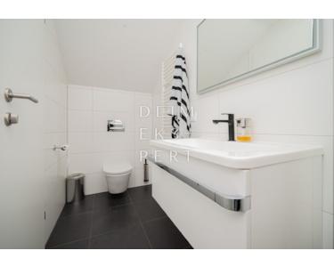 Die Etagen sind durch eine interne Treppe verbunden, während das Dachgeschoss als Wohnbereich ausgebaut ist.