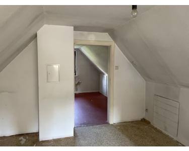 Die Wohnfläche verteilt sich über drei Etagen. Über die Eingangstreppe gelangen Sie ins Erdgeschoss mit Diele, Küche und zwei Zimmern. Über eine Treppe im Wohnraum erreichen Sie das Dachgeschoss mit einem Durchgangszimmer und einem weiteren Zimmer. Von der Küche aus gelangen Sie in die Kellerräume. Hier finden Sie ein kleines Wannenbad und eine separate Toilette.