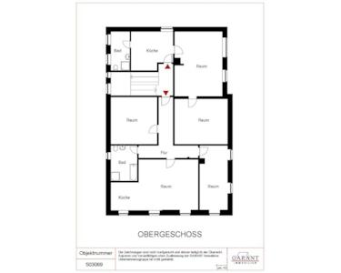 * 1. Obergeschoss rechts (ca. 100 qm): drei Zimmer, Küche, Bad, WC