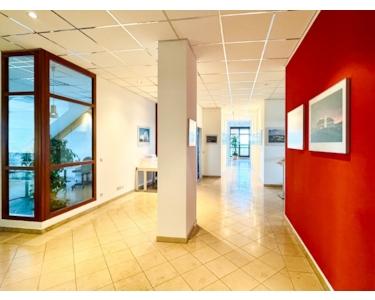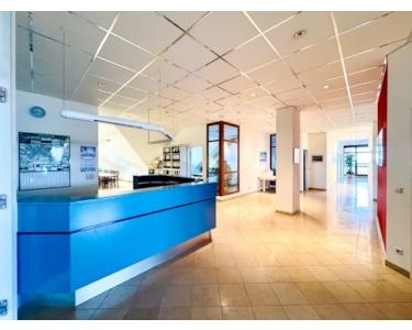 Ein großzügiger Empfangsbereich schafft eine repräsentative Atmosphäre.