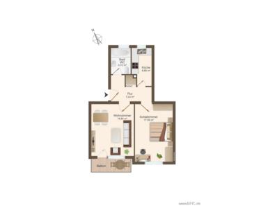 Die Wohnung hat rund 58 m², EBK und Wannenbad.