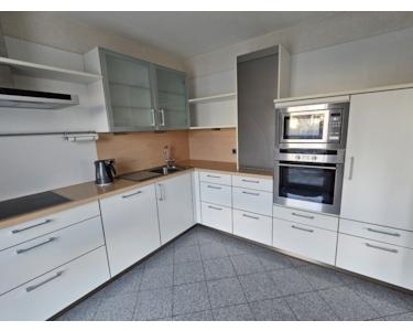 Im Erdgeschoss erwartet Sie eine helle 2-Zimmer-Wohnung mit einem großzügigen Wohnzimmer, das direkten Zugang zur Terrasse und zum pflegeleichten Garten bietet. Die moderne Einbauküche ist mit hochwertigen Markengeräten ausgestattet. Vom Flurbereich gelangen Sie in Ihr modernes Tageslichtbad mit Wanne und Dusche und in das Gäste-WC.