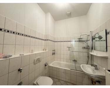 Das Badezimmer ist mit einer geräumigen Badewanne ausgestattet, in der Sie nach einem langen Arbeitstag herrlich entspannen können. Hier wurde viel Wert auf hochwertige Sanitärinstallationen gelegt.