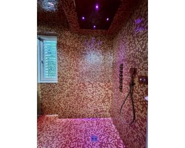 Es ist ausgestattet mit einem Whirlpool, eine Sauna für 4 Personen, ein schönes türkisches Bad und eine Dusche mit Chromotherapie.