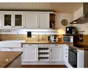 Im Kaufpreis des Hauses sind die moderne Alno-Einbauküche, 2 moderne Holzöfen, die Badmöbel, die Terrassen-Überdachung und ein Schuppen im Garten für Gartengeräte und Holz enthalten.