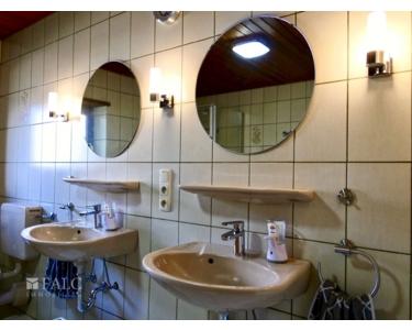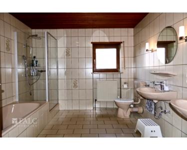 - Badezimmer mit Badewanne, Dusche, WC, Bidet, 2 Waschbecken, Fenster