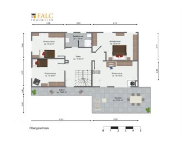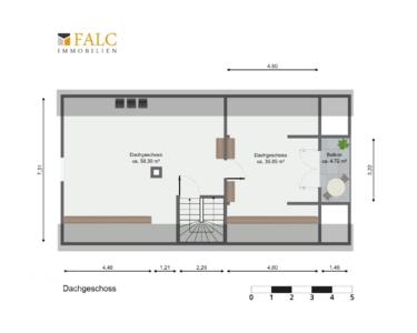 Das teilausgebaute Dachgeschoss mit Balkon ist isoliert und kann durch Vollendung in ein Home-Office oder Wohnraum für Ihre Familie bieten.