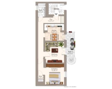 Die Räume der Wohnung sind lichtdurchflutet, was eine freundliche und einladende Stimmung schafft. Das moderne Tageslichtbad der Wohnung ist mit einer komfortablen Dusche und einem wandhängendem WC in weißer Keramik ausgestattet. Das helle Wohn- und Schlafzimmer bietet ausreichend Platz für die individuelle Gestaltung Ihrer Wohnträume. Hier können Sie sich ganz nach Ihren Vorlieben einrichten und wohlfühlen.