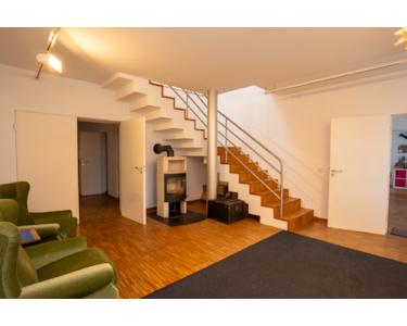 - Kaminofen im Erdgeschoss, Pelletofen im Obergeschoss