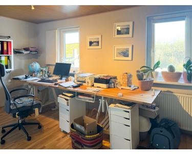 Das Wohnhaus wurde ca. 1997 kernsaniert, besteht aus zwei Vollgeschossen und ist teilweise unterkellert. Alle drei Wohneinheiten sind separat von außen zu begehen. Die Wohnung (DG rechts) mit ca. 100 m² besteht aus einem Wohn-/ Essbereich mit einer großzügigen Dachterrasse, einem Flur, einer Küche, einem hochwertigen Badezimmer und einem Büro. Über eine Treppe gelangen Sie in das ausgebaute Dachgeschoss mit zwei Schlafzimmern und einem modernen Bad. Die Wohnung (DG links) mit ca. 140 m² gliedert sich auf in drei Zimmer, ein hochwertiges Badezimmer, einen offenen Wohn-, Ess- und Küchenbereich mit Kamin und Balkon. Die Wohnung im EG hat eine Fläche von ca. 80 m² und teilt sich auf in zwei Schlafzimmer, ein Wohnzimmer, eine Küche und zwei Bäder.