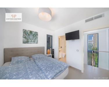 Im Obergeschoss befinden sich zwei weitere Schlafzimmer, jeweils mit Bad en Suite und Einbauschränken. Das Hauptschlafzimmer verfügt zusätzlich über eine eigene, private Terrasse.