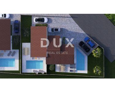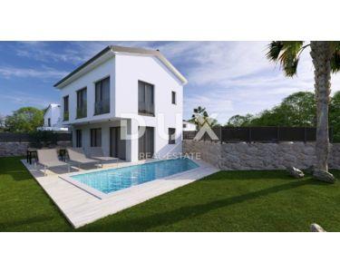 Dieser moderne Neubau in Malinska auf der Insel Krk ist perfekt für alle, die eine ruhige Lage mit Meerblick und in der Nähe aller Annehmlichkeiten suchen. Das Doppelhaus mit einer Wohnfläche von 115,78 m2 erstreckt sich über zwei Etagen und ist ideal für Familien, die einen voll funktionsfähigen Raum genießen möchten. Im Erdgeschoss gibt es eine Eingangsveranda und eine Eingangshalle, ein geräumiges Wohnzimmer, das mit der Küche und dem Esszimmer verbunden ist, eine Toilette und eine Terrasse, die zu einem angelegten Garten mit einem Swimmingpool und einer Liegewiese führt. Über eine Innentreppe gelangt man in den ersten Stock, wo sich drei Schlafzimmer, zwei Badezimmer, ein Flur und eine Terrasse mit Meerblick befinden. Zum Haus gehören zwei Stellplätze im eigenen Hof. Dieses Objekt zeichnet sich durch eine erstklassige Bauweise und Ausstattung aus, darunter eine Fußbodenheizung mit WLAN-Steuerung, Klimaanlage in jedem Zimmer sowie hochwertige Keramik und Sanitärkeramik. Die Entfernung zum Meer und zum Zentrum beträgt nur 600 Meter, was den Zugang zu allen Annehmlichkeiten ermöglicht. Da die Bauarbeiten für Dezember 2025 geplant sind, ist dies eine ideale Gelegenheit für Familien, die eine ruhige Umgebung, luxuriöse Annehmlichkeiten und die Nähe zur natürlichen Schönheit der Insel Krk suchen. Verpassen Sie nicht die Gelegenheit! Kontaktieren Sie uns noch heute und sichern Sie sich Ihr Stück vom Paradies auf der Insel Krk.