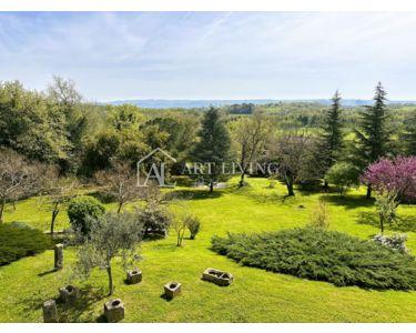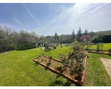Ein wunderschön angelegter Garten mit reichhaltigem mediterranen Gartenbau, kultivierten Olivenhainen und großzügig angelegten Rasenflächen ist von einem 5.000 m2 großen Wald umgeben, der ebenfalls zum Grundstück gehört.