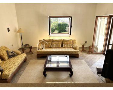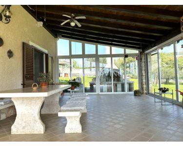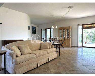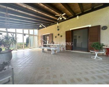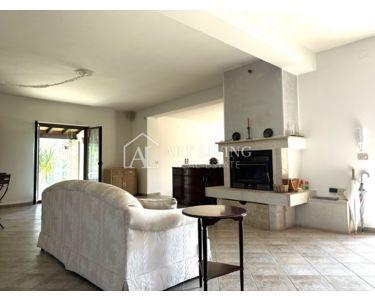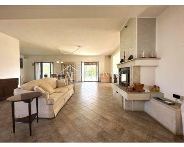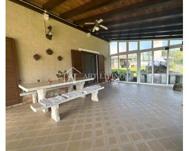 Im Erdgeschoss gibt es außerdem eine große Veranda mit einer Gesamtfläche von 45 m2, umgeben von einem wunderschönen Garten und viel Grün, mit einem Esstisch aus Stein, einem Außenkamin und einem malerischen Steinbrunnen.