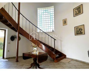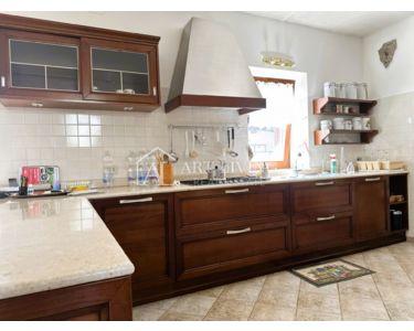 Das Haus mit einer Gesamtfläche von 600 m2, mit schöner Einfahrt, erstreckt sich über 3 Etagen, Erdgeschoss, Obergeschoss und Dachgeschoss.