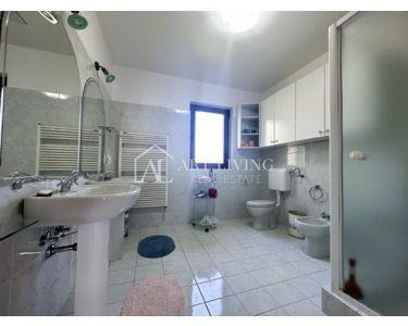 Die erste Etage besteht aus 3 Schlafzimmern, eines davon ist das Hauptschlafzimmer mit eigenem Bad, Kleiderschrank und einer großzügigen überdachten Terrasse von ca. 30 m2 mit einem schönen, beruhigenden freien Blick auf die istrische Landschaft. Die verbleibenden zwei geräumigen Gästezimmer teilen sich ein zweites, gemeinsames Badezimmer.