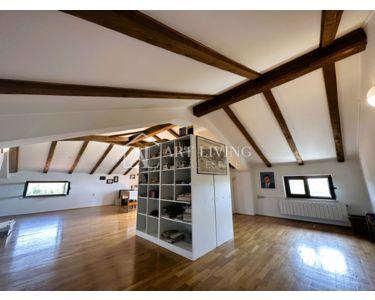 Die wunderschön dekorierte Mansarde besteht aus einem zusätzlichen Schlafzimmer, zwei Badezimmern und einem geräumigen, offenen Wohnzimmer mit einem schönen Blick auf das gesamte Anwesen.