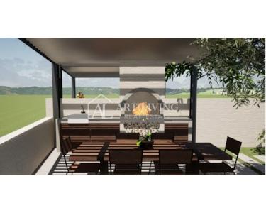 In einer charmanten und ruhigen Siedlung, nur 5 km vom bekannten Poreč und nur 2,5 km vom Meer und den Stränden entfernt, steht dieses moderne Reihenhaus zum Verkauf, dessen Bau im Jahr 2024 begann.