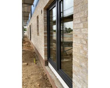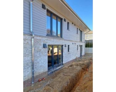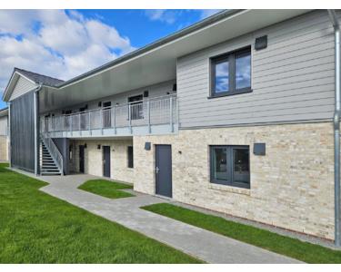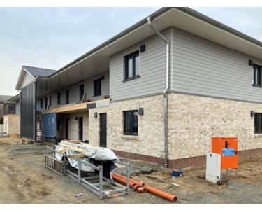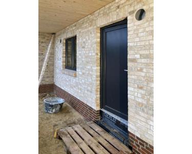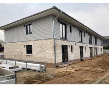 Das Gebäude besteht aus einem Holzständerwerk und ist im Erdgeschoss mit schönen Klinkersteinen verblendet, während die Fassade im Obergeschoss mit Cedral verkleidet ist.