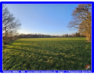 Sie möchten mehr über diese Ackerfläche erfahren? Dann nehmen Sie bitte Kontakt mit uns auf! Gerne senden wir Ihnen unser ausführliches Exposé mit Kartenübersicht zur Lage der Parzelle. Ihre Tebbel Immobilien GmbH Telefon: 05952-808