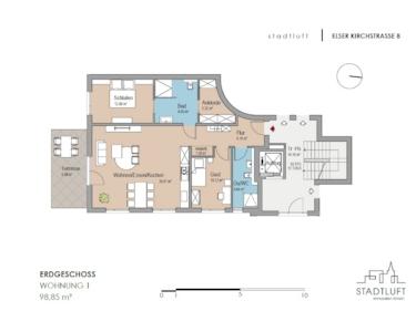 Sämtliche Wohnungen sind barrierefrei erreichbar, ein Personenaufzug mit vier Haltestellen bringt Sie von