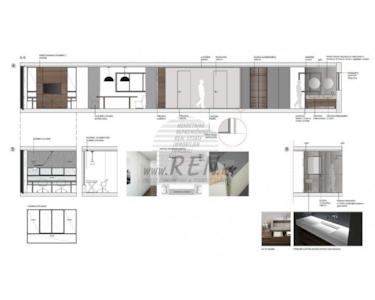 Das Apartment ist luxuriös mit maßgefertigten Möbeln eingerichtet, die sowohl Funktionalität als auch Ästhetik gewährleisten. Der Raum ist durchdacht gestaltet, um das natürliche Licht und den Meerblick zu maximieren. Der Hauptwohnbereich umfasst: