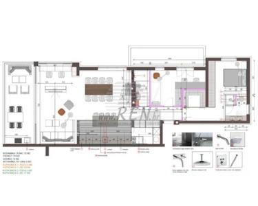 Die Wohnung verfügt über eine Fußbodenheizung und ein Deckenkühlungssystem von Mitsubishi Electric, die das ganze Jahr über für optimale Klimatisierung sorgen. In den Räumen sind Riello Helioterm-Gebläsekonvektoren installiert, während Siemens RDG100T- und Fantini Cosmi CH 110-Thermostate eine präzise Temperaturregelung ermöglichen.