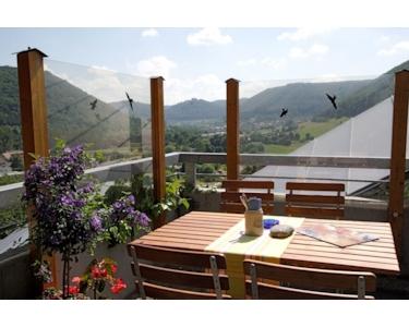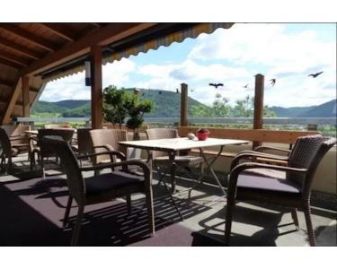 Die Anlage besteht aus einem Haupthaus mit einem gemütlichen Restaurant, welches ein ganz besonderes Ambiente ausstrahlt und über eine herrliche, ca. 220 m² große Terrasse, mit einem separaten Sanitärbereich verfügt. Die Aussicht, die ihresgleichen sucht, und der besondere Charme dieses Gebäudeteils, locken Hotelgäste und Restaurantbesucher, aber auch Wanderer und Radtouristen, gleichermaßen an. Dieser Gebäudeteil ist Anfang der 50er-Jahre entstanden und wurde 1969 zum Hotel umgebaut.