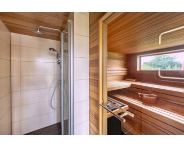 •Saunahaus mit Dusche, Fußbodenheizung + TV-Sat- und Netzwerkanschluss