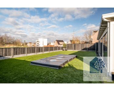 Ein wunderschöner Garten, viele Möglichkeiten zum Genießen und ein großer Wintergarten, der mit einer Glasschiebewand komplett abgeschlossen werden kann. Dies sind bereits einige Vorteile, die mit diesem wunderbaren Ort verbunden sind. Im Sommer können Sie den Swimmingpool genießen und da der Rasen künstlich ist, ist er auch leicht zu pflegen. Durch die einmalige Aussicht können Sie eine Oase der Ruhe und Entspannung in vollen Zügen genießen und in der angeschlossenen Steingarage Ihrem Hobby nachgehen.