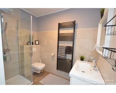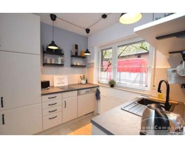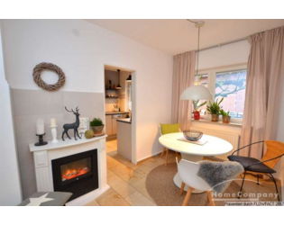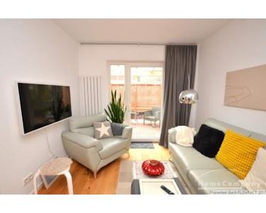 Vom Eingang aus gelangt man in den zentralen Flur. Das gemütliche Wohnzimmer mit einer Couchgarnitur und TV ist offen mit dem Esszimmer verbunden. Der Elektro-Kamin sorgt für eine angenehme Atmosphäre. Daneben befindet sich die vollausgestattete moderne Küche, die keine Wünsche offen lässt. Die Terrasse ist vom Wohnzimmer aus zu betreten und hat genug Platz für 2 Personen. Über den Flur erreicht man das Schlafzimmer mit Doppelbett und einem Kleiderschrank. Die Wohnung ist perfekt für 1 Person oder ein Paar.