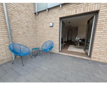 Zur Südwest-Seite liegend kommen in den Wohnräumen mit integriertem Küchenbereich ausschließlich bodentiefe Fensterelemente zum Einsatz, die für viel Helligkeit sorgen. Die Terrassen und Balkone – letztere mit Glasgeländer – sind ebenfalls nach Südwest ausgerichtet und bieten eine kleine Oase der Ruhe.