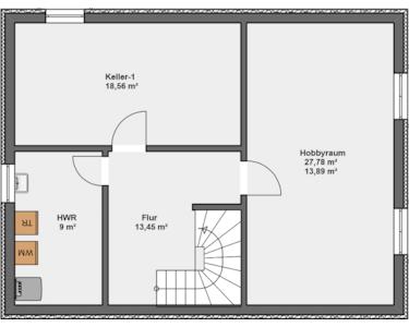 - Keller mit großem Hobbyraum optional gegen Aufpreis (Beispielgrundrisse in diesem Exposé)