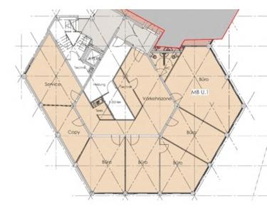 Im hellen und mit großen Fenstern ausgestatteten Untergeschoss (Souterrain) steht Ihnen eine Bürofläche mit ca. 265 m² zur Verfügung. Die Fläche ist bequem mit dem Aufzug und ebenerdig über die Tiefgarage zu erreichen. Die Fläche ist derzeit unterteilt in fünf Einzelbüros, einen Service- und Kopierraum, eine Teeküche und eine Toilettenanlage. Die Aufteilung ist flexibel und kann ebenso wie die gesmate Austattung den Anforderungen des neuen Mieters angepasst werden.