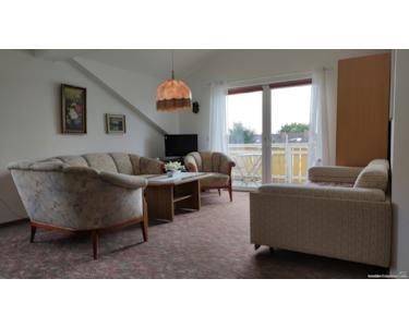 Das gemütliche Wohnzimmer der linken Einheit im Dachgeschoss