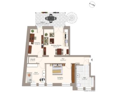Die Wohnung besticht durch ihre durchdachte Raumaufteilung und hochwertige Ausstattung. Der offene Wohn- und Küchenbereich schafft ein einladendes Ambiente, während drei geräumige Schlafzimmer ausreichend Platz für individuelle Gestaltung bieten. Das Tageslichtbad ist mit einer Dusche und einer Badewanne ausgestattet und verfügt über einen praktischen Waschmaschinenanschluss.