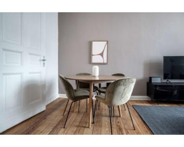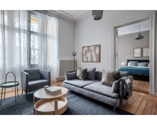 Die lichtdurchfluteten Wohnungen befinden sich überwiegend in einem gepflegten Zustand und zeichnen sich durch sorgfältig erhaltene Altbau-Details wie Flügeltüren, Dielenböden und teilweise Kachelöfen aus. Viele der Wohnungen verfügen zudem über Tageslichtbäder und Balkone. Einige Einheiten wurden renoviert, wobei moderne Ausstattungen in Bädern und Elektrik geschickt mit dem Altbaucharme integriert wurden.