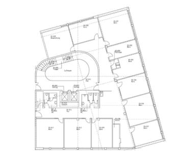 Das moderne Bürogebäude mit sieben Etagen verfügt über zwei hochwertige, attraktive Eingangsbereiche. Hinter einer aufwändig gestalteten Stahl-/Glas-/Natursteinfassade verbirgt sich ein ansprechender Bürokomplex, dessen repräsentative Eingangssituation mit Naturstein, Edelstahl und einer gestalteten Beleuchtung bereits beim Betreten die gehobene Qualität demonstriert. Die modern ausgestatteten Büroeinheiten verfügen über integrierte Kühldecken, Hohlraumböden, belegt mit hochwertigem Teppichbodenbelag, Gipskartonwände und einen außenliegenden, motorisch betriebenen Sonnenschutz.