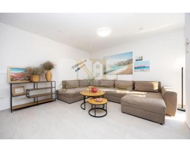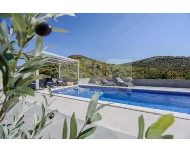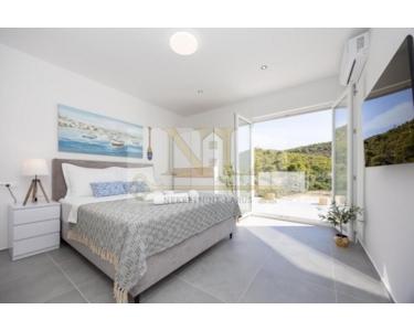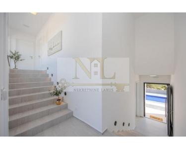 Diese kleine moderne Villa wurde 2024 erbaut und liegt an einem sanften Hang in Südlage, nur wenige Schritte vom Meer und Strand entfernt.