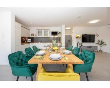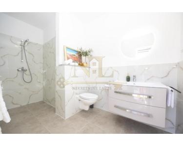 Die Villa besteht aus zwei Etagen. Im Erdgeschoss gibt es eine geräumige offene Küche mit Esszimmer und Wohnzimmer, eine separate Toilette, ein Schlafzimmer mit eigenem Bad und eine Innentreppe, die in den ersten Stock führt. Im ersten Stock befinden sich zwei Schlafzimmer mit zwei eigenen Bädern, beide Zimmer haben Zugang zu einem geräumigen Balkon.